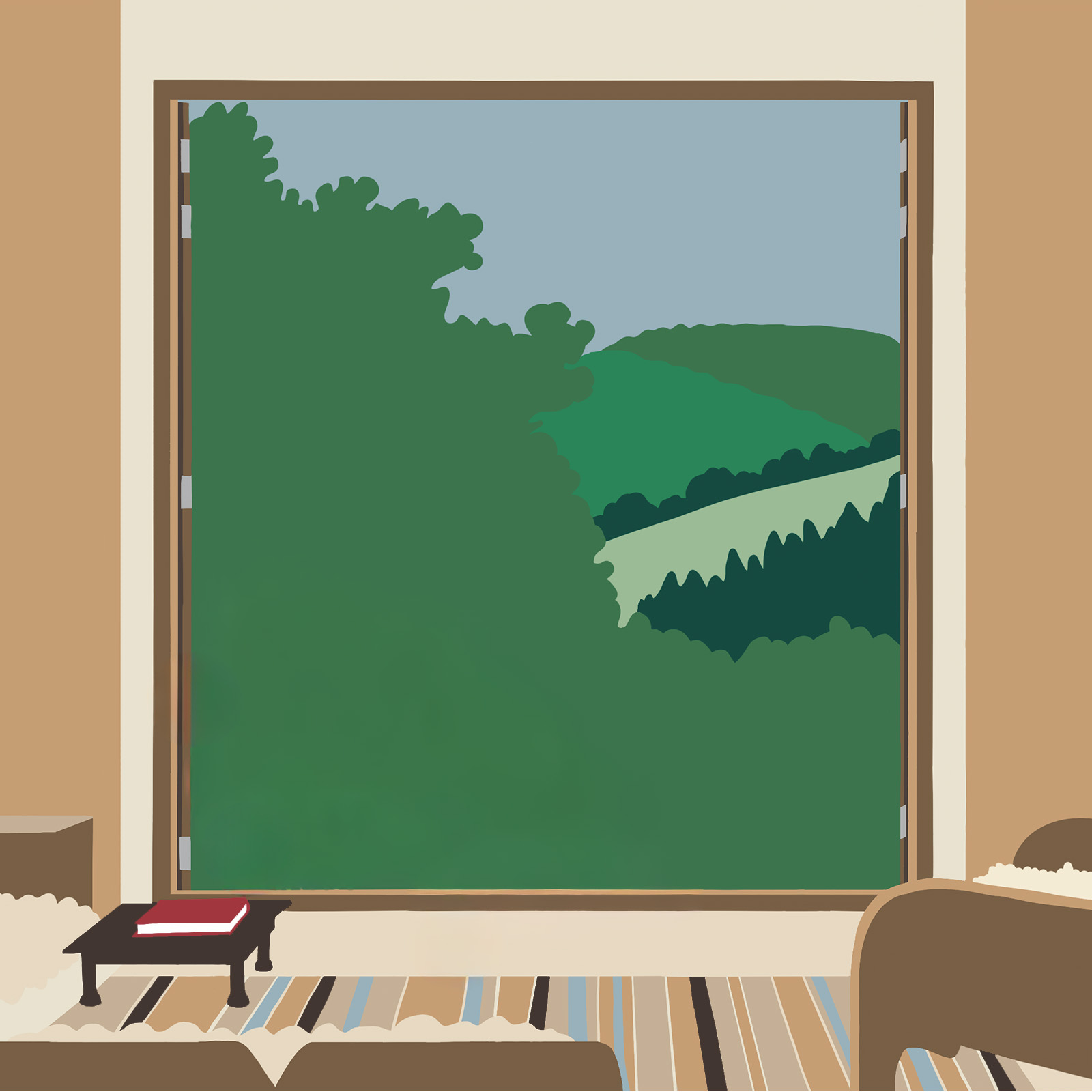 This is the view from our house in Asturias; the place where I recharge and find inspiration. Gazing through the window, I see a valley that looks like a small painting: just a few lines separating shades of green. This simplicity inspired me to return to illustration.
